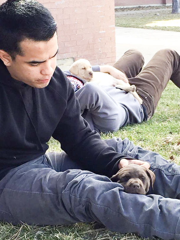 This is a highly therapeutic process in which youth must be approved by Triumph Youth Services Clinicians and administration to participate. Teaching these dogs takes an extreme amount of patience and compassion. The students learn various life skills from this program including: positive recreation, patience, communication, responsibility, handling frustration, the importance of repeating positive actions/behavior, fair and positive competition, establishing appropriate relationships and boundaries, accepting NO, dealing with failure and stick-to-itiveness. This is a huge trust building exercise, as well as learning true accountability and responsibility. Studies have shown that spending time with a friendly dog, even for a short time, increases the amount of endorphins that are released into the body, and decreases the levels of the hormone Cortisol, which controls stress and arousal. Because many troubled teens are in a near constant state of emotional anxiety and/or stress, spending quality time with animals can help them feel calmer and provide motivation to apply to their own lives. We just got three new puppies on campus for some of the boys to work with. This is a unique opportunity for some of our boys to learn some valuable life skills as mentioned above.